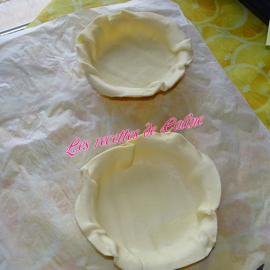 Étalez la pâte et foncez 2 moules à tartelettes.