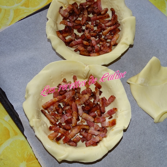Répartissez les lardons sur la pâte, avec le camembert écroûté et coupé en lamelles.