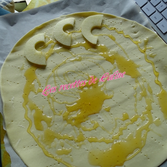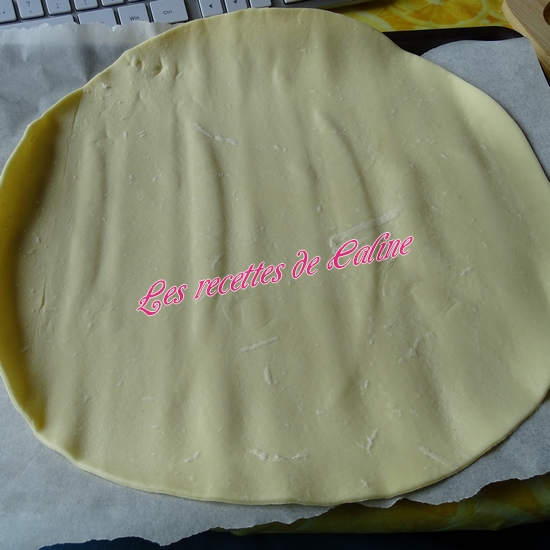 Sur une plaque de cuisson recouverte de papier cuisson, étalez la pâte feuilletée