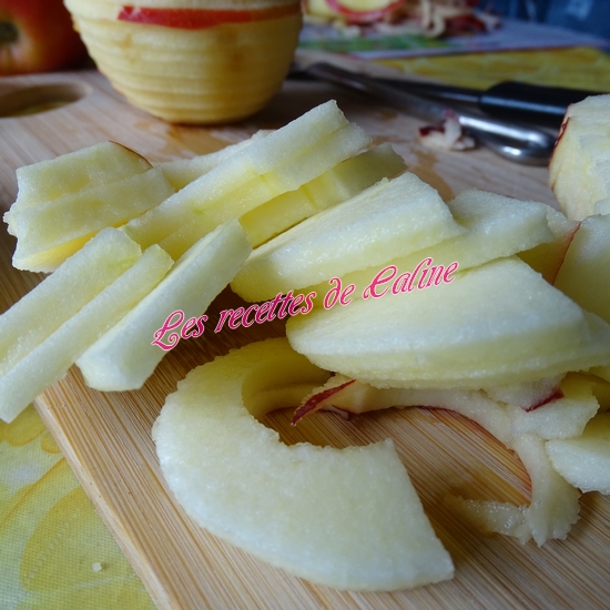 3 pommes rouges moyennes, coeurs retirés, tranchées en fines rondelles (ou lamelles)
