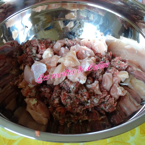 N’ayant pas trouvé de chair à saucisses en grande surface, du coup je me suis rabattu sur la farce à légumes, eh bien je ne suis pas déçu, cela donne un très bon goût