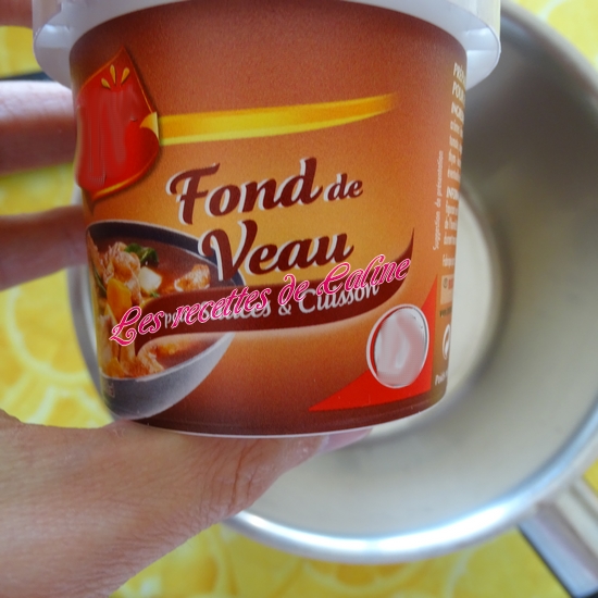 Dans un bol ou petite casserole, diluez l’eau et le fond de veau, réservez.