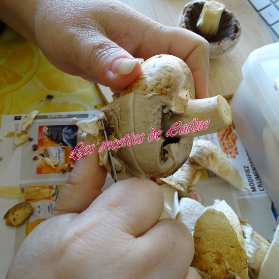 Epluchez et coupez les champignons en lamelles.