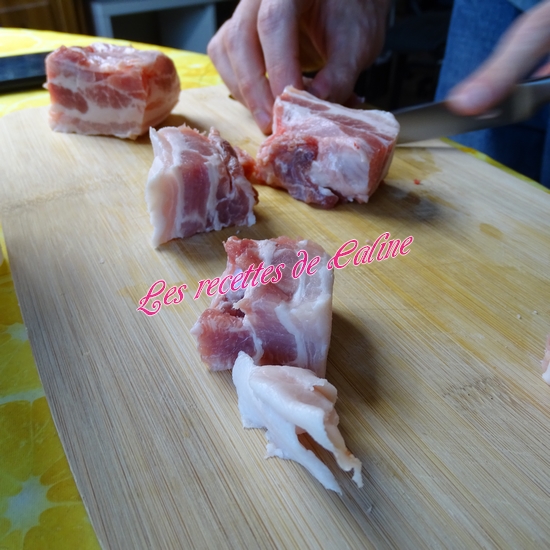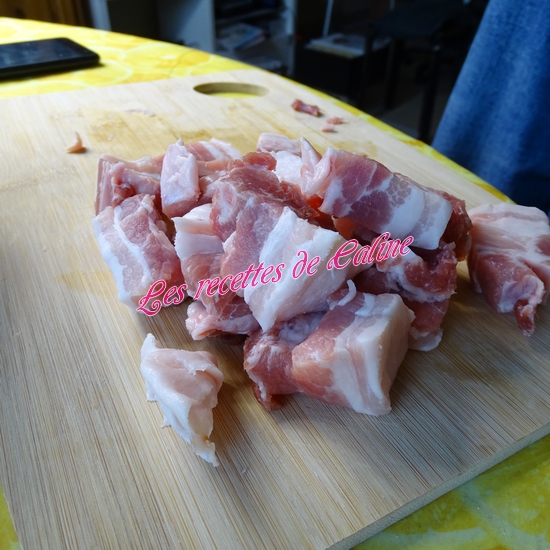 Coupez les viandes en morceaux, et le gras en petits morceaux.
