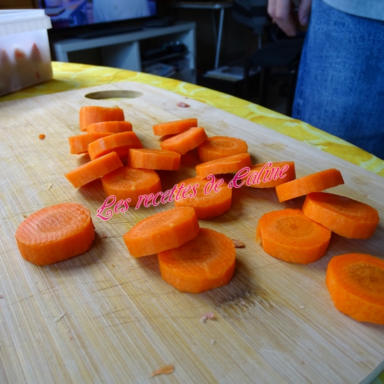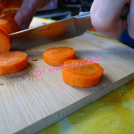 Epluchez et coupez la carotte en gros morceaux, ainsi que le second oignon, réservez.