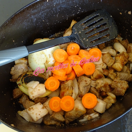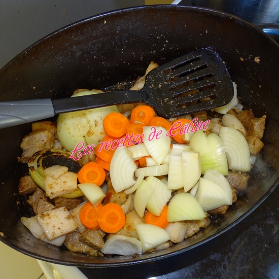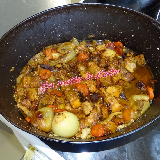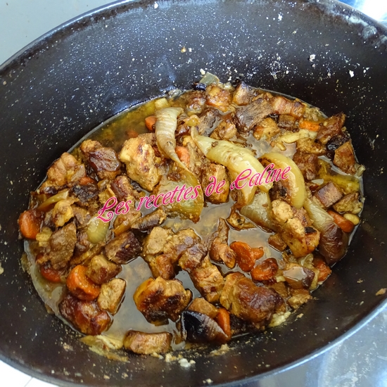 Couvrir et laissez cuire pendant 3h soit au four à 150°C (Th.5) ou sur la gazinière à petit frémissement en surveillant régulièrement.