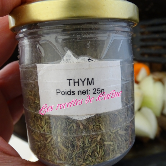 Ajoutez la carotte, l’oignon coupé en morceaux, le thym et le laurier, bien mélanger.