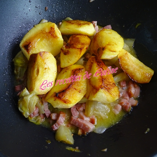 Une fois les endives cuites, ajoutez les pommes, mélangez et laissez cuire encore 5 min.