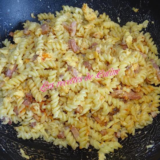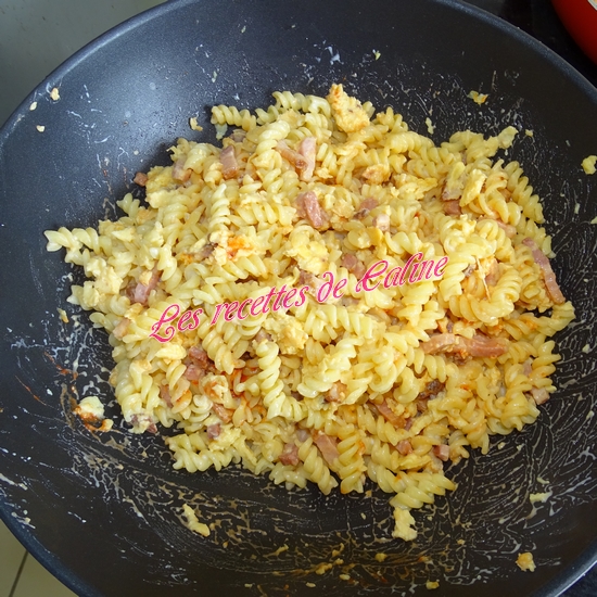 Jetez un peu de gras de cuisson des lardons et incorporez les oeufs battus. remuez avec une spatule pour détacher
