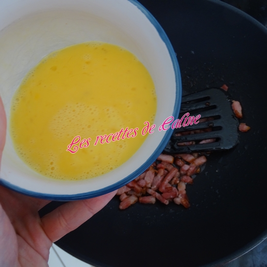 Faites revenir les lardons dans une poêle sans ajout de matière grasse