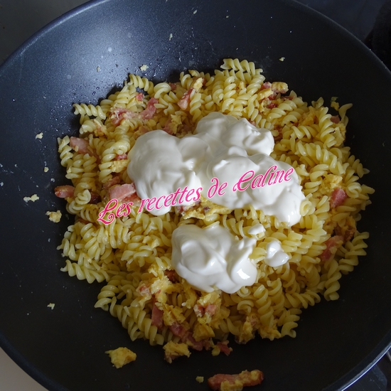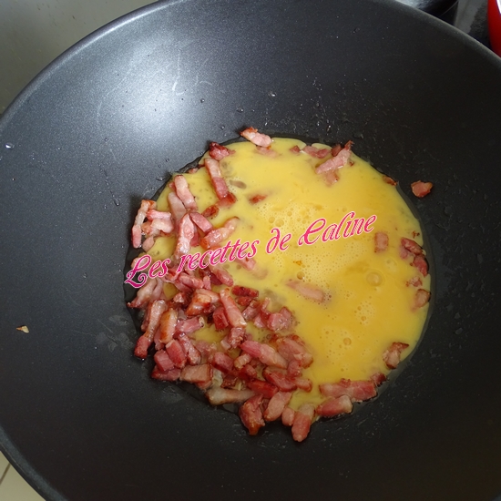 Jetez un peu de gras de cuisson des lardons et incorporez les oeufs battus. remuez avec une spatule pour détacher