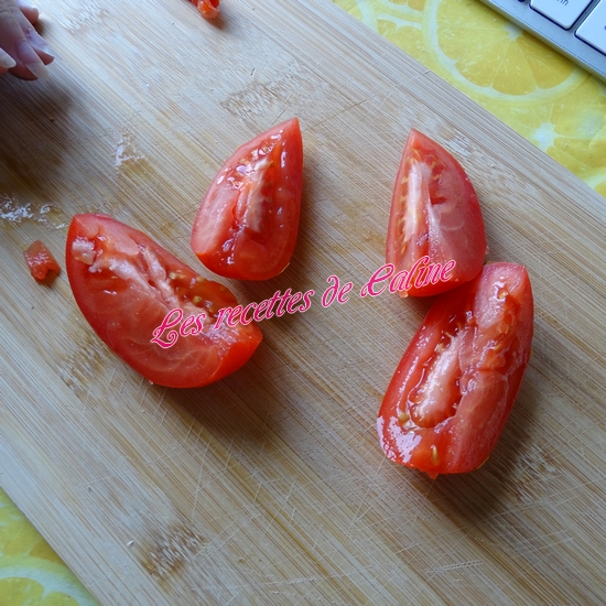 Ajoutez la mayonnaise et bien mélanger le tout (perso la mayonnaise, je la mets de dernière minute car vu que la tomate rend de l’eau après ça fait de la bouillie)