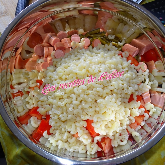 Cuire les pâtes comme indiqué sur le paquet, une fois cuites, passez les sous l’eau froide.