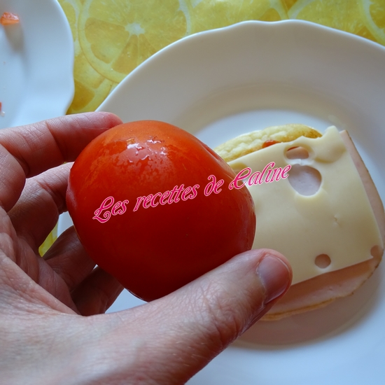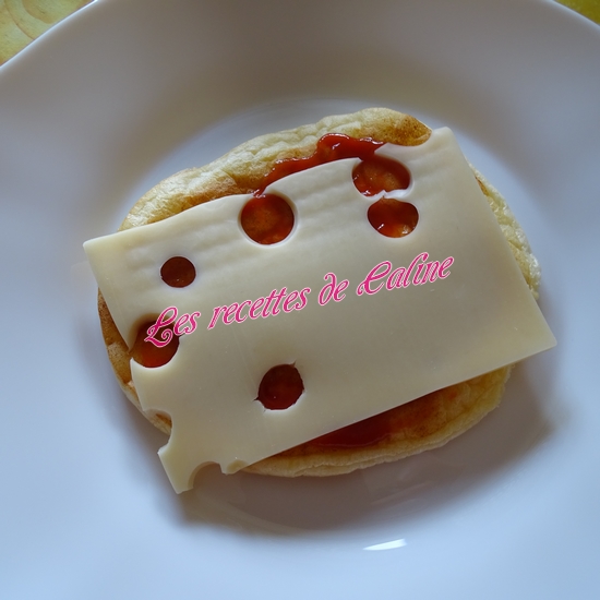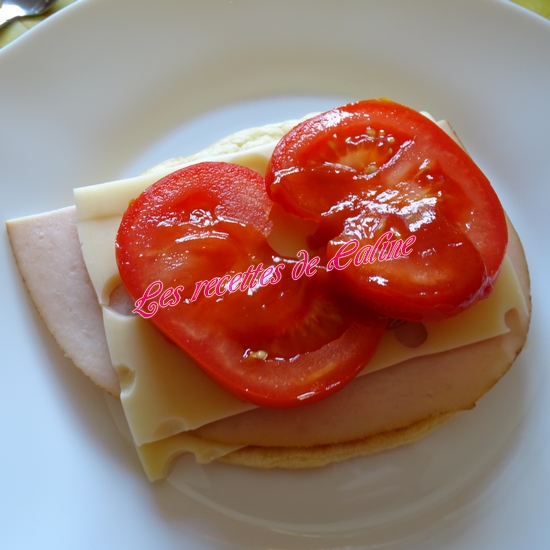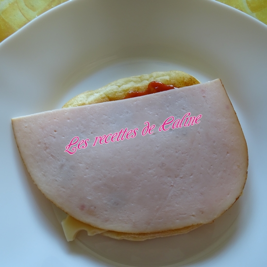Garnissez les pains Oopsie en déposant sur un des disques, un peu de ketchup, 1 tranche d’emmental, puis 1 tranche de jambon, 1 ou 2 rondelles de tomates, remettre un peu de ketchup (ou pas), remettre 1 tranche d’emmental et fermez le tout avec un second disque.