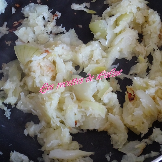 Dans une poêle, faites cuire les oignons coupés en fines lamelles dans un filet d’huile.