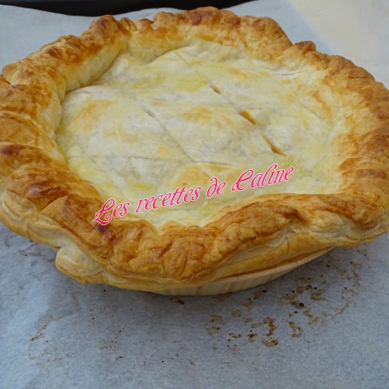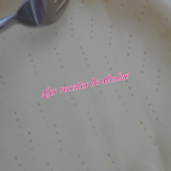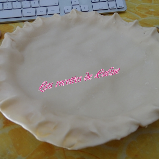 Une fois refroidie, dans un moule, mettre une pâte feuilletée avec son papier sulfurisé.