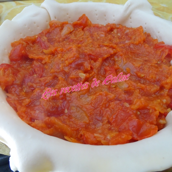 Déposez la farce et bien égalisez avec une cuillère (Vous pouvez disposer quelques olives).