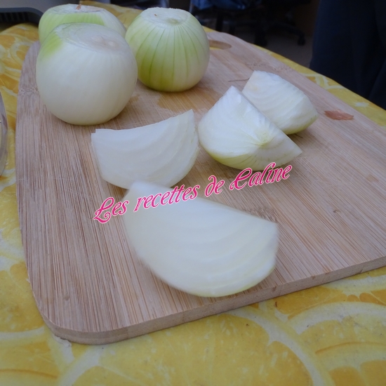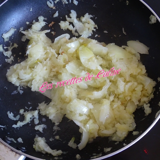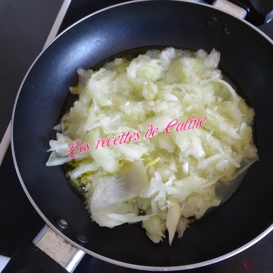 Dans une poêle, faites cuire les oignons coupés en fines lamelles dans un filet d’huile.