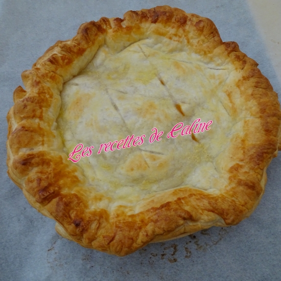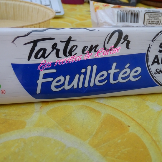 Une fois refroidie, dans un moule, mettre une pâte feuilletée avec son papier sulfurisé.