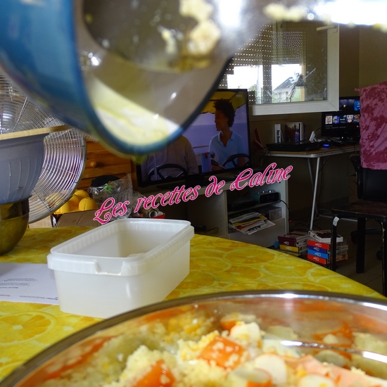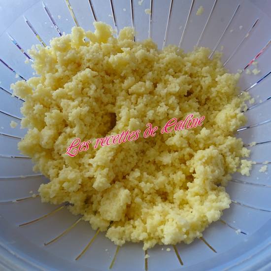 Une fois votre semoule bien gonflé, à l’aide d’une fourchette, décoller bien les grains de façon que ça ne fasse pas de boules et laissez-la bien refroidir.