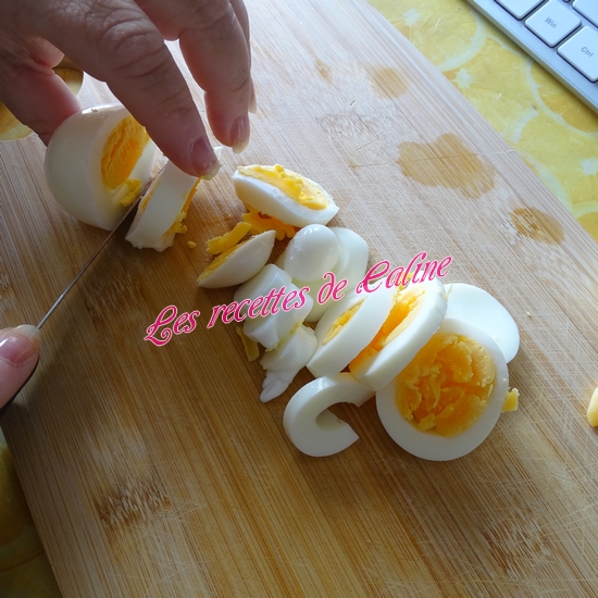 Cuire les oeufs puis les refroidir dans l’eau glacé.