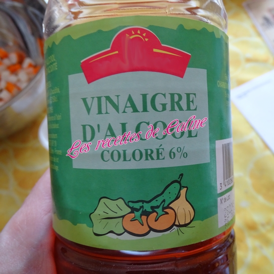 Préparez votre vinaigrette avec sel, poivre, 9 cuil à soupe de vinaigre et 3 cuil à soupe d’huile d’olive (si vous faites une plus petite quantités de salade, mettre moins de vinaigrette, chez nous c’est 1 d’huile pour 3 de vinaigre), bien mélangez le tout et versez sur la préparation semoule, mélangez bien le tout.