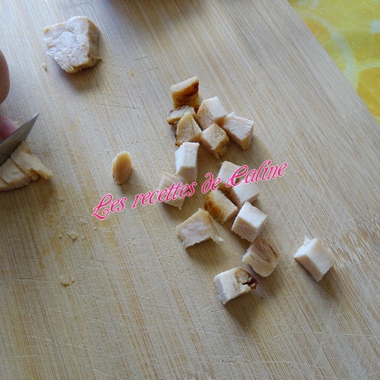 Coupez le poulet en petits dés.