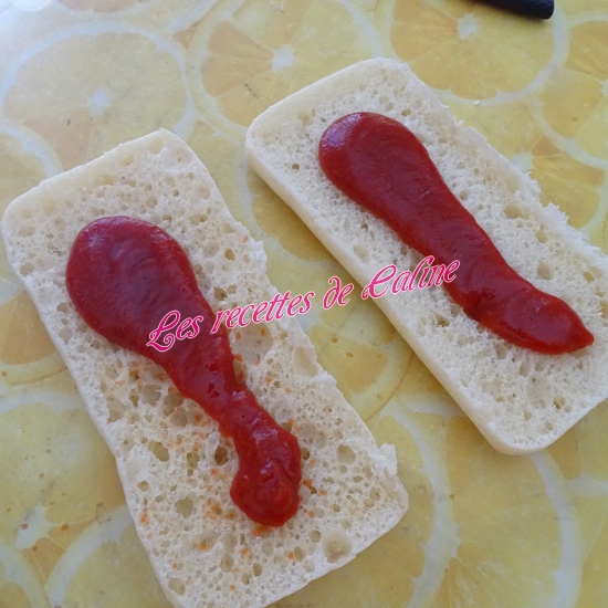Etalez un peu de ketchup sur la 1ere tranche de pain