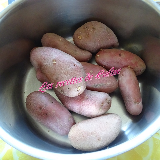 Dans une grande casserole, déposez les pommes de terre et couvrir d’eau froide. Saler, puis porter à ébullition. Laissez-les cuire jusqu’à ce qu’elles soient cuites, aidez vous d’un couteau pour voir la cuisson.