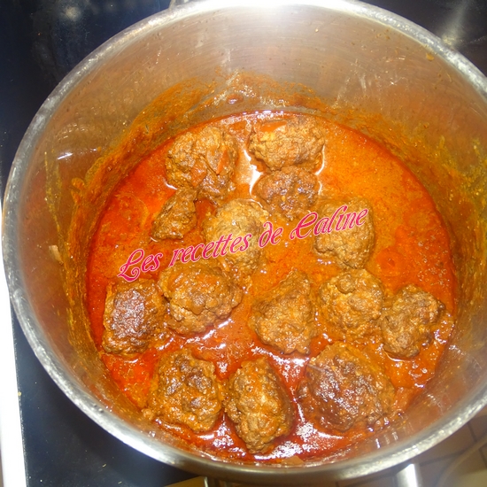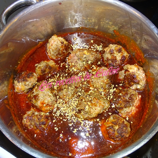 Ajoutez les boulettes dans le faitout, ajoutez le vin, le thym, le laurier et laissez mijoter à feu doux pendant 45 min.