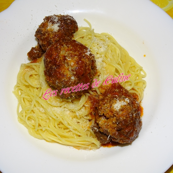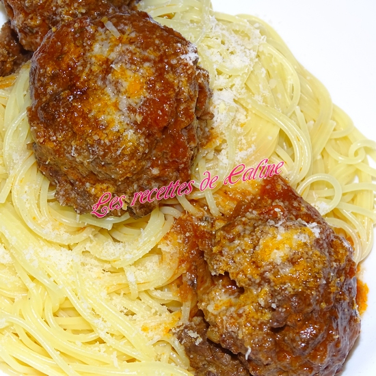Servez vos spaghettis dans des assiettes creuses, ajoutez la sauce et les boulettes et nappez de parmesan.