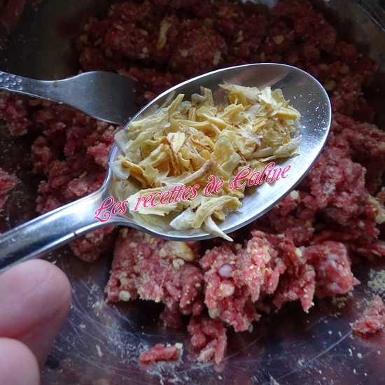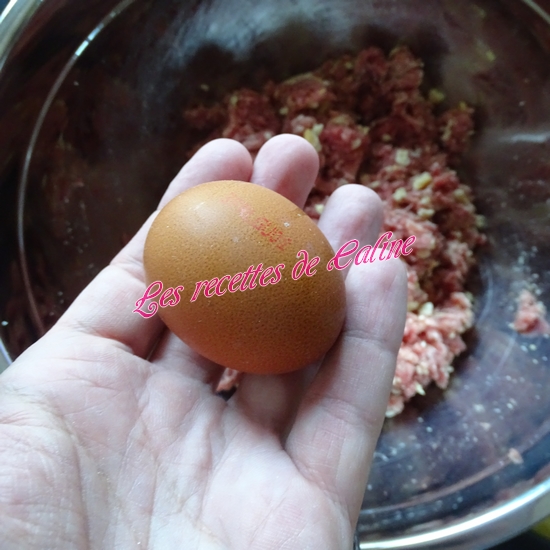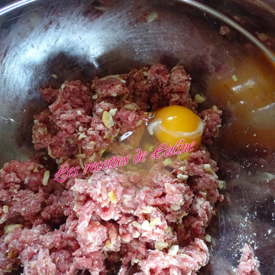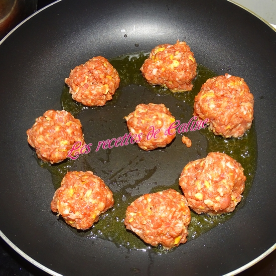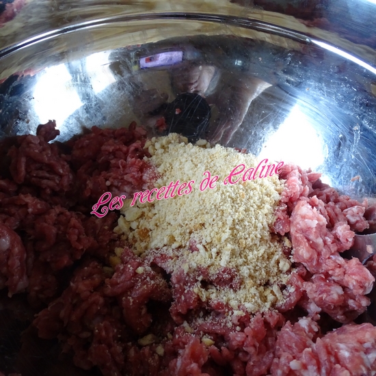 Dans un saladier, mélangez les 2 viandes, ajoutez la chapelure, l’oeuf et la seconde cuil à soupe d’oignon. Réalisez les boulettes de la taille d’une noix et les faites-les revenir dans une poêle bien chaude. Faites-les cuire 10 min.