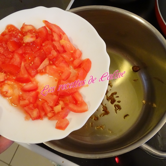 Ajoutez la tomate coupée en cubes et l’ail émincé.