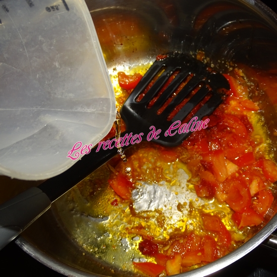 Ajoutez le concentré de tomates et un peu d’eau et mélangez bien.