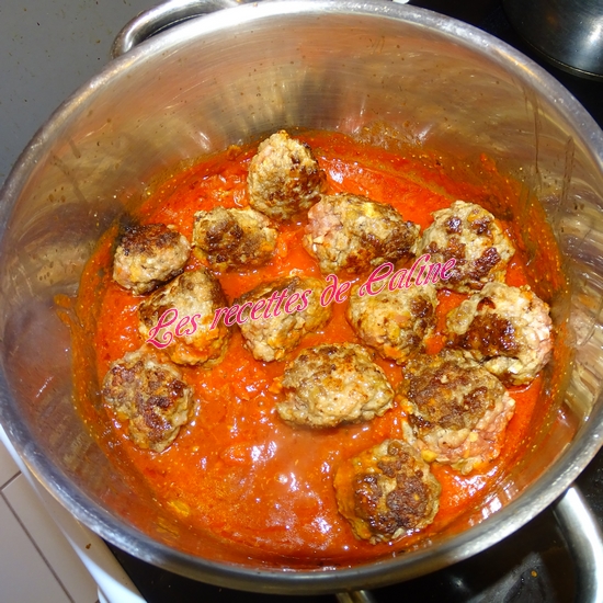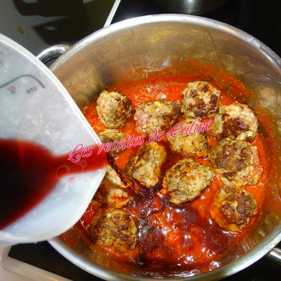 Ajoutez les boulettes dans le faitout, ajoutez le vin, le thym, le laurier et laissez mijoter à feu doux pendant 45 min.