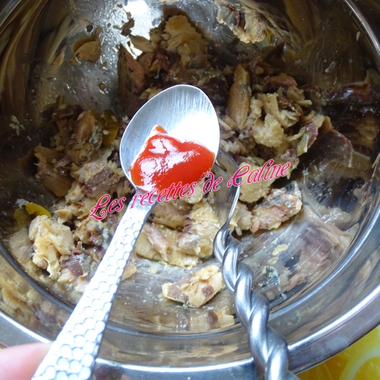 Versez le ketchup (j’en ai mis un peu plus d’une cuil à café). Bien mélanger.