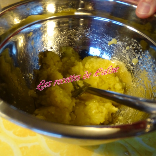 Dans un saladier ou bol de votre robot, mélangez la pomme de terre réduite en purée, le sel et l’huile d’olive.