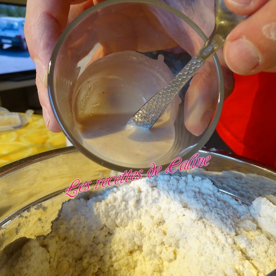 Dans un verre, faites dissoudre la levure dans 2 cuil à soupe d’eau tiède et laissez agir 5 min.