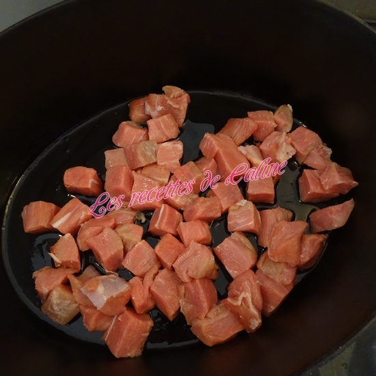 Dans une cocotte, faites revenir le veau et l’oignon à feu moyen environ 10 min.