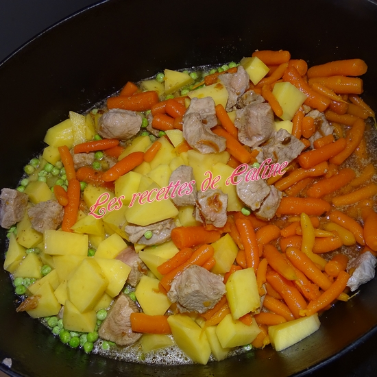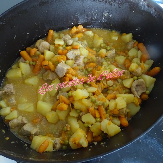 Portez à ébullition, couvrez et faites mijoter à feu doux environ 40 min.(Il faut que les pommes de terre et carottes soient cuites)