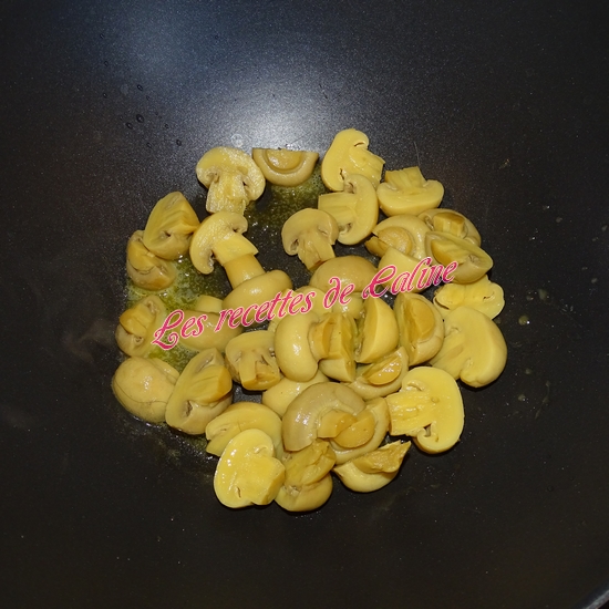 Vous pouvez faire cette recette avec des champignons de paris frais, coupez-les en lamelles, et faites les revenir correctement dans une poêle sans matière grasse de façon que toute l’eau s’évapore et ensuite pour pourrez les faire revenir dans le beurre comme dit dans la recette