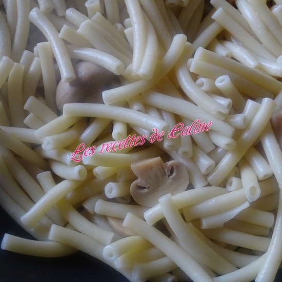 Ajoutez le vin blanc, portez à ébullition quelques secondes, baissez le feu, puis ajoutez les pâtes cuites et égouttées. Mélangez bien.
