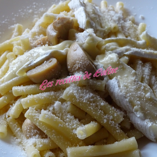 Versez dans les assiettes et déposez sur les pâtes des lamelles de camembert, qui vont fondre dessus.