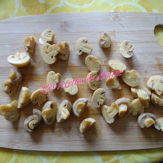 Vous pouvez faire cette recette avec des champignons de paris frais, coupez-les en lamelles, et faites les revenir correctement dans une poêle sans matière grasse de façon que toute l’eau s’évapore et ensuite pour pourrez les faire revenir dans le beurre comme dit dans la recette