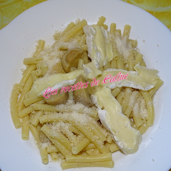 Versez dans les assiettes et déposez sur les pâtes des lamelles de camembert, qui vont fondre dessus.