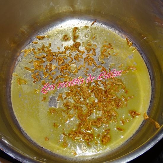 Dans une casserole, faire revenir l’oignon coupé finement dans le beurre