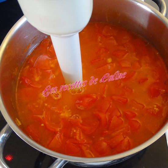 Normalement il faut mixer votre soupe au moulin à légumes mais comme j’en avais pas, j’ai utilisé mon mixeur plongeant, et ensuite j’ai passé la soupe dans un chinois comme ça plus aucune peaux. Si vous n’avez pas de mixeur plongeant, vous pouvez aussi utiliser un Blender
