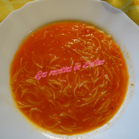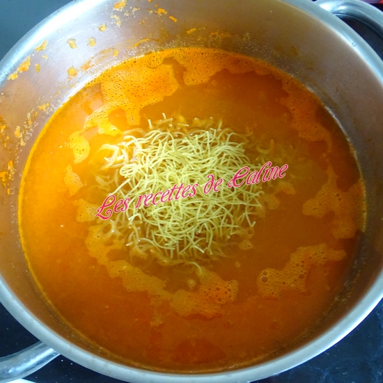 Faire bouillir la soupe de tomate, ajouter les vermicelles et éteignez le feu, couvrez et attendre 3 à 5 min