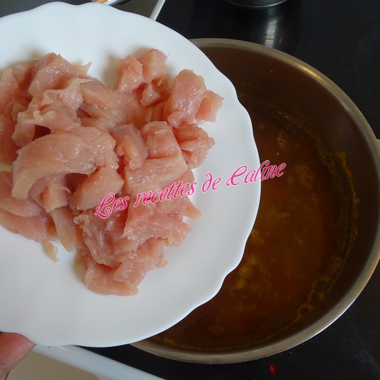 Ajoutez les pâtes et cuire environ 15 min, ajoutez le poulet. Coupez le feu dès que vous ajoutez le poulet, couvrir et laissez reposer 5 min.