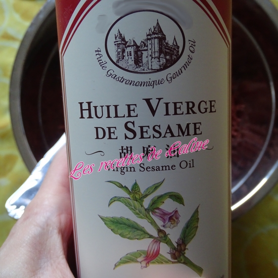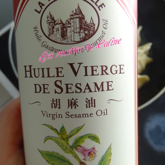 Assaisonnez avec du poivre, de la sauce soja, de l’huile de sésame, et du sel (je n’ai pas remis de sel car pour moi la sauce soja est déjà salé).